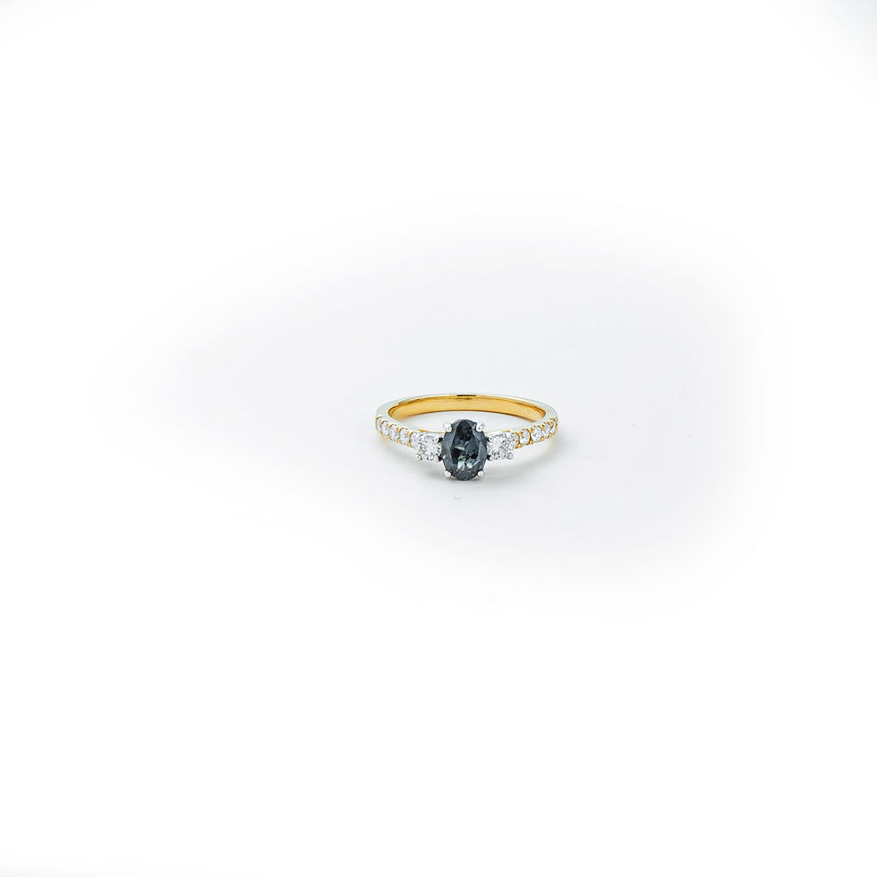18ct Yellow Gold Teal Sapphire and Diamond Ring